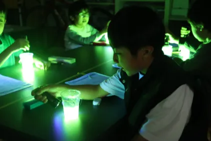 ブラックライトで光るスライムや、顕微鏡でのぞくミクロの世界。